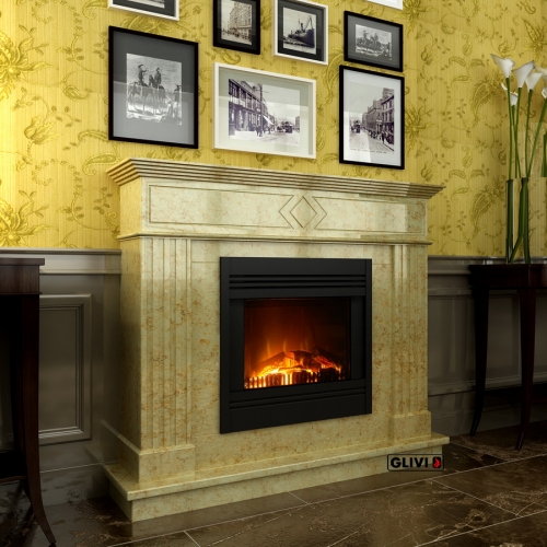 - Камин выполнен из полированного мрамора Giallo Rena.