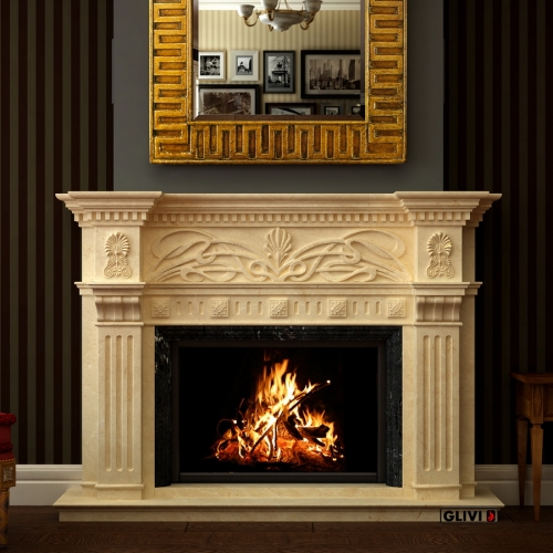 - Камин выполнен из полированного мрамора Crema Marfil, Negro Marquina.