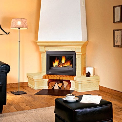 - Материалы : Золотисто-песочный Edelroc или белый Edelroc + топочная плита из кирпича