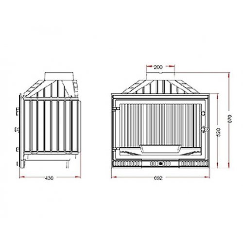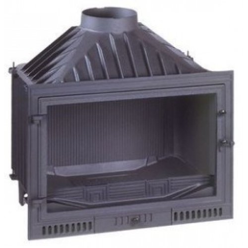 Также у данной модели  топки высокий дымосборник и чугунный дефлектор. Увеличенный обзор огня дает хорошую возможность любоваться пламенем.