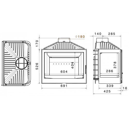 Топка L7 R (Liseo). С дымосборником. С правым боковым стеклом.