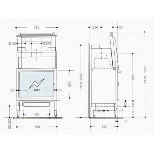 | Диаметр дымохода, мм | 200 |