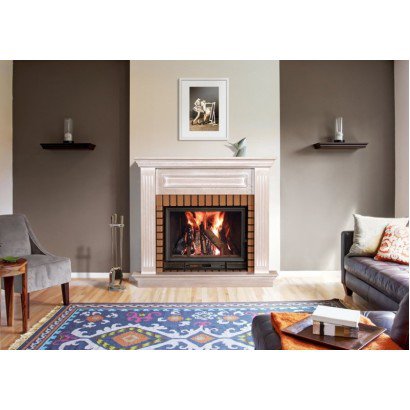 Sunhill Leeds - деревянный камин из дуба в классическом стиле. Простые формы впишутся в любой интерьер. Вы можете выбрать другой цвет тонировки дерева. Отделка вокруг топочной части камина выполнена из желтого кирпича. К камину Leeds подойдет топочная камера закрытого типа. Чертеж Sunhill Leeds