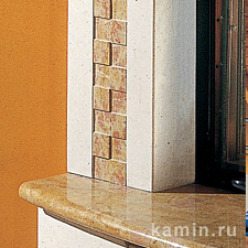 обрамление из тигрового восточного мрамора со вставками из нержавеющей стали.