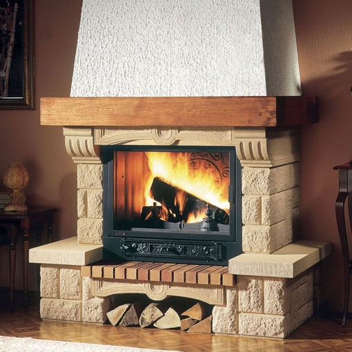 Пристенный камин из камня Edelroc®. Балка из экзотического дерева. Знаменитый французский стиль «рустик».