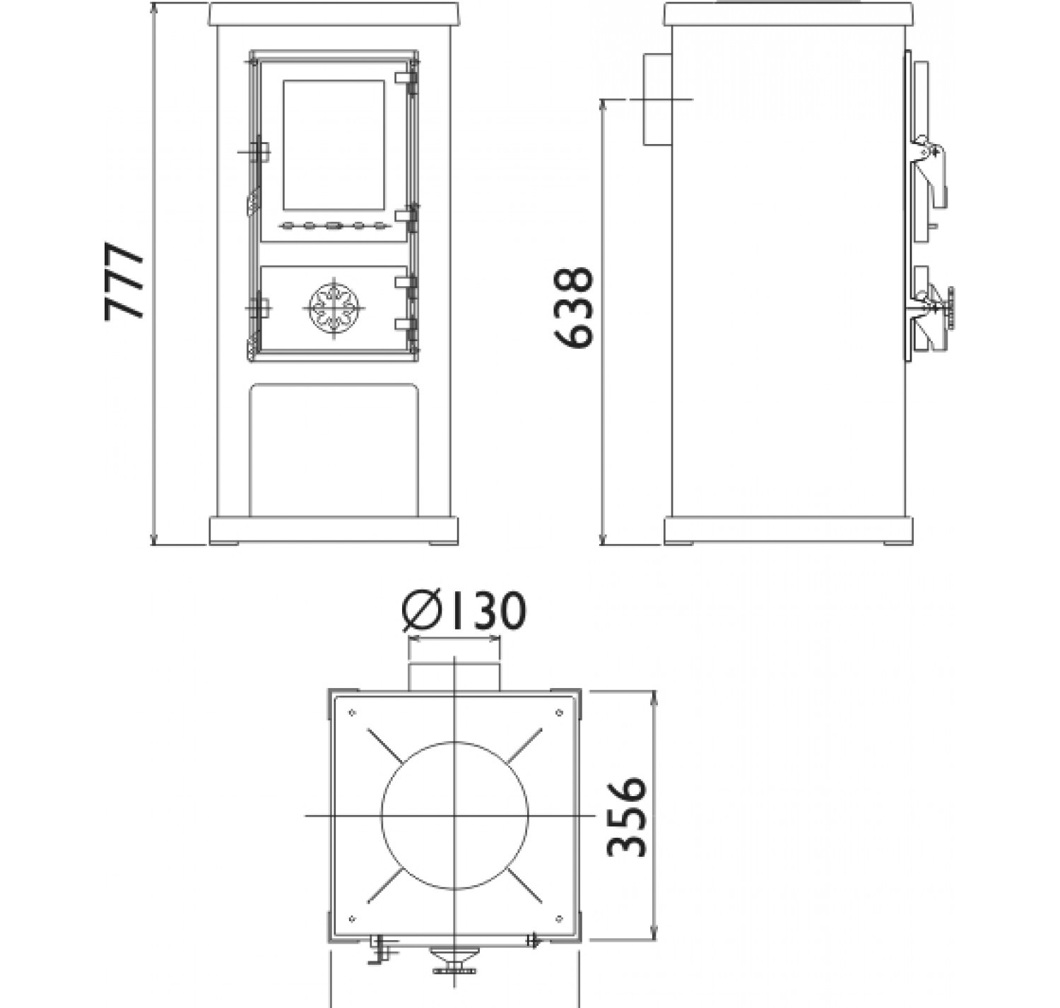 Топка печи Lappi изготовлена из стали, оснащена стеклокерамическим стеклом, выдерживающим температуру нагрева в 700 градусов С. Эта печь оборудована варочной конфоркой, есть экономичный режим (длительное горение). Внизу предусмотрено углубление для хранения дров.