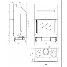- Подходящие топки: с прямым стеклом с подъемом или боковым открыванием дверцы, открытая топка, электроочаг. В комплект входят плиты для адаптации под топку