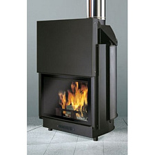 Стальная каминная топка с боковым стеклом. Дверца с подъемом вверх.