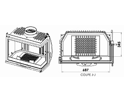 Топка на фото - D70. Ссылки на подходящие к данному камину топки указаны справа под техническими характеристиками.