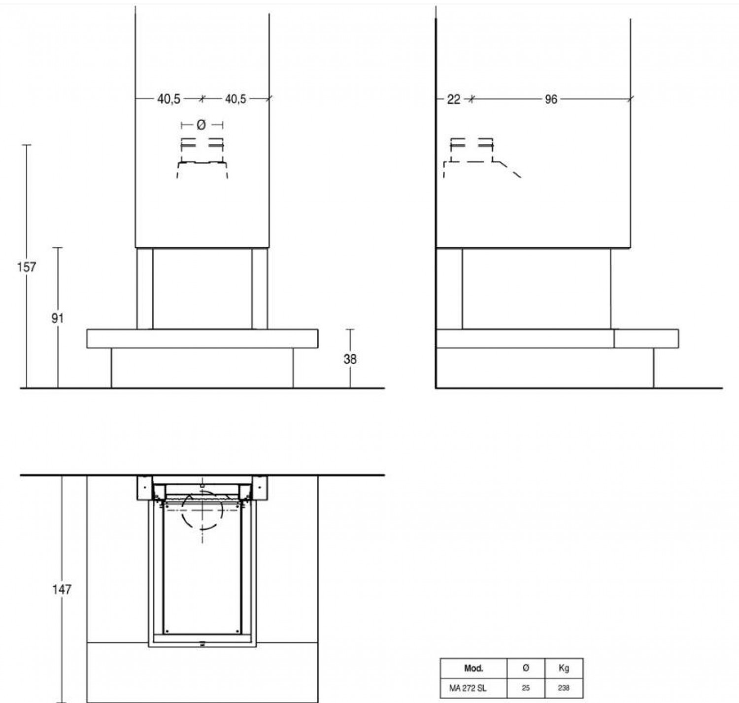 У пристенного камина Edinburg основание изготовлено из большого цельного блока майолики, причем, цвет камня можно выбрать из широкой палитры Piazzetta. Опора основания сделана из мрамора. Топка с тремя панелями из стекла позволяет украсить интерьер замечательной деталью. Камин совместим с топкой MA 272 SL