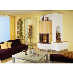 - Имеет эффект пламени последнего поколения на светодиодах и инфракрасный обогрев. Великолепно выполненный муляж дров расположен за эффектным панорамным стеклом. Передняя остекленная часть очага полукругом выдается вперед. За счет этого внутреннее пространство топки, отделанное "под кирпич", кажется очень глубоким и реалистичным.