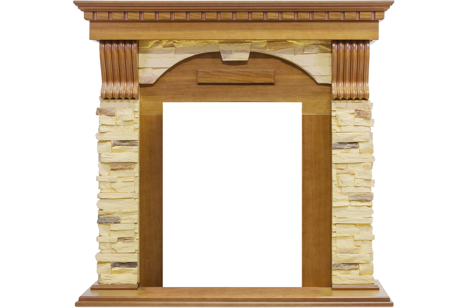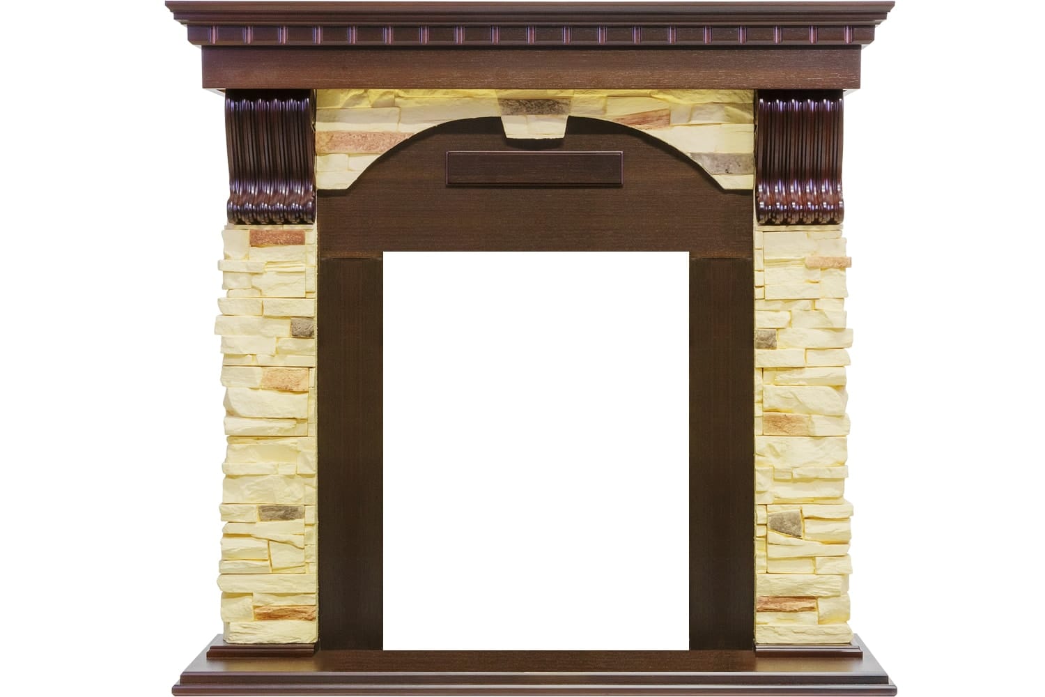 Популярные расцветки позволят подобрать подходящий вариант портала под любой интерьер. Зона очага выполнена в виде полукруглой арки, что акцентирует внимание как на самом очаге, так и на горящем в нем пламени.