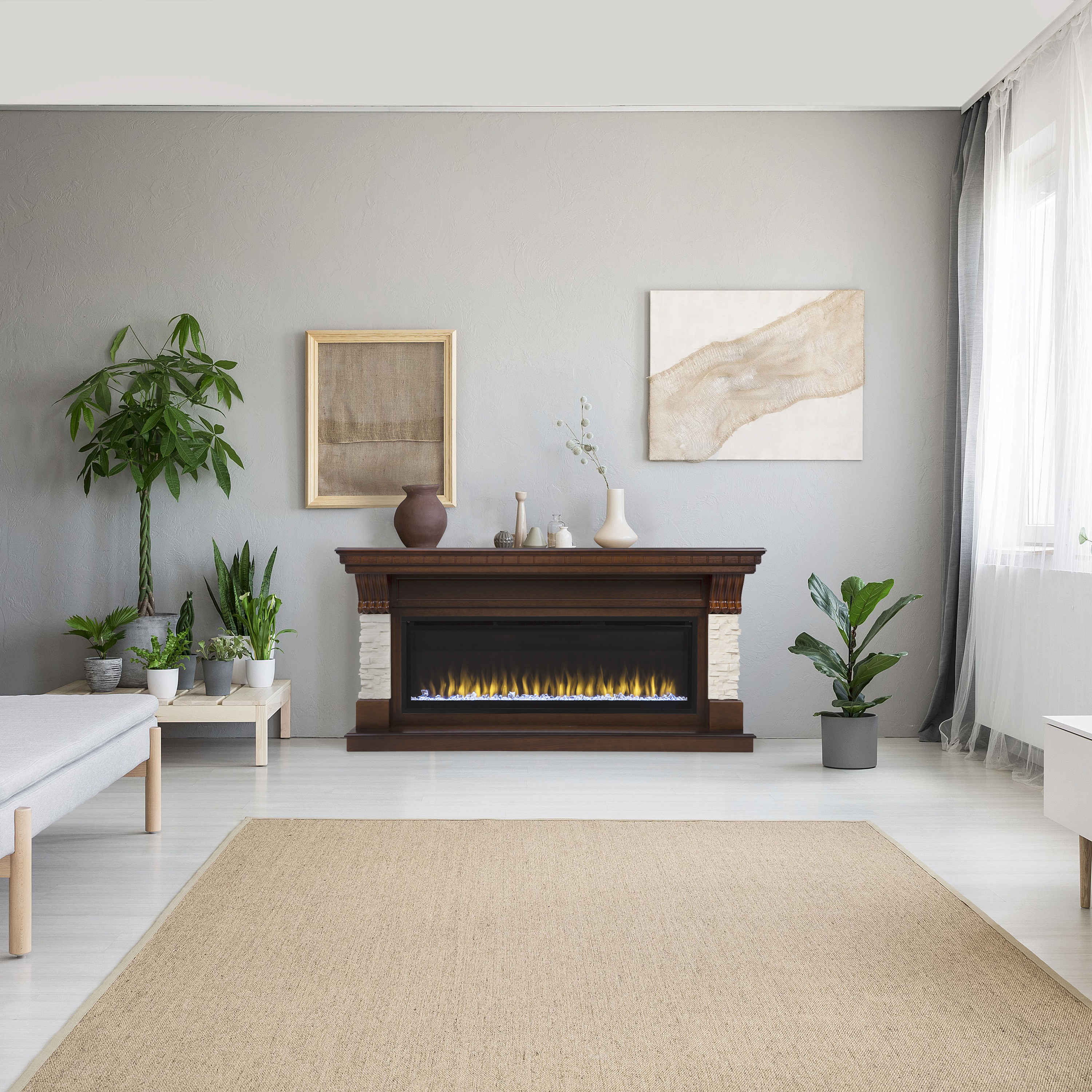 Портал в сочетании с очагом непременно станет центром внимания ваших гостей, создаст для вас уютную и комфортабельную обстановку, а образ горящего пламени со звуковым сопровождением и теплота, исходящая от камина, станут отличными помощниками в расслаблении души и тела после тяжелого рабочего дня.